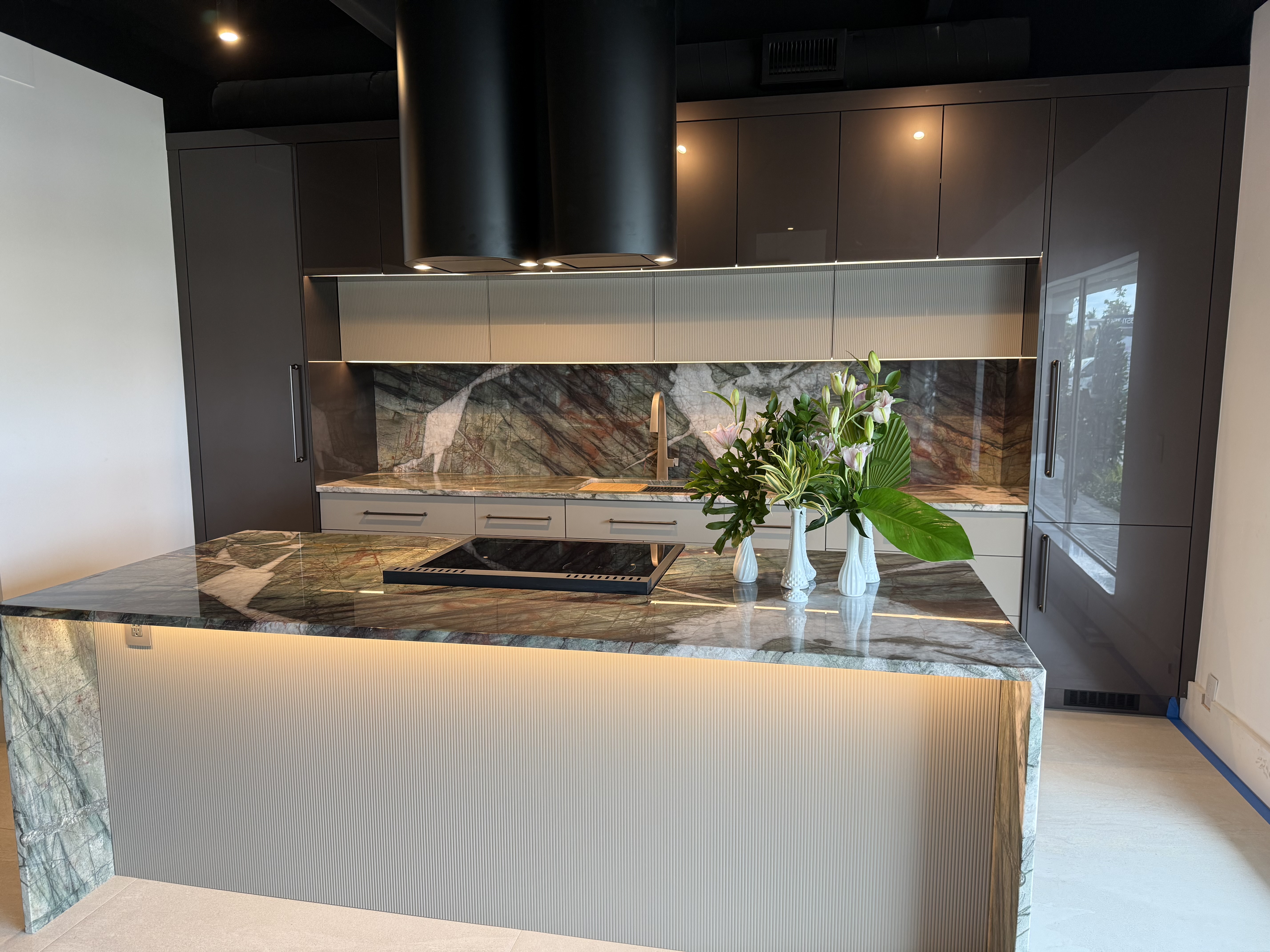 Used alone – or in multiples; The contemporary XOCYL, designed and crafted in Italy, performs as beautifully as it looks. With quiet, efficient peripheral aspiration the 600 CFM blower whisks away cooking exhaust, while twin spot lights brilliantly illuminate the work area below.